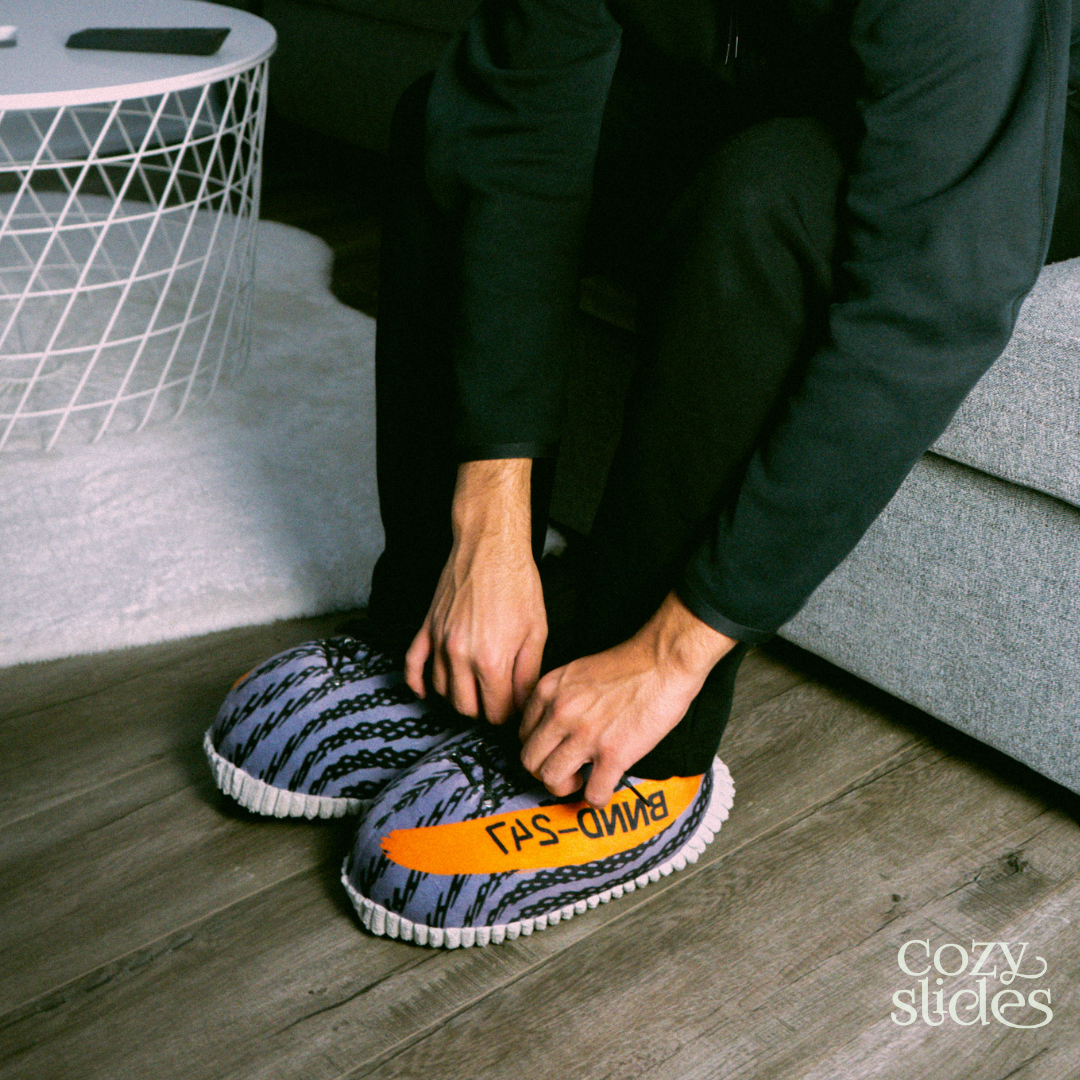 Get the perfect indoor sneaker inspired slippers. Featuring an incredibly soft faux fur wrapped in a plush cushion to provide you ultimate bliss. Perfect for lounging.